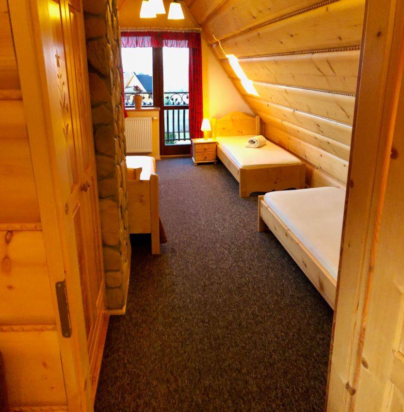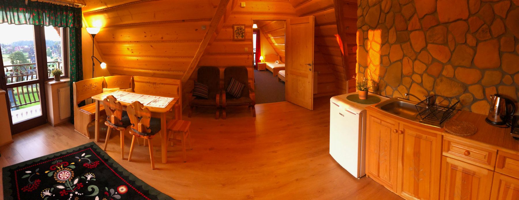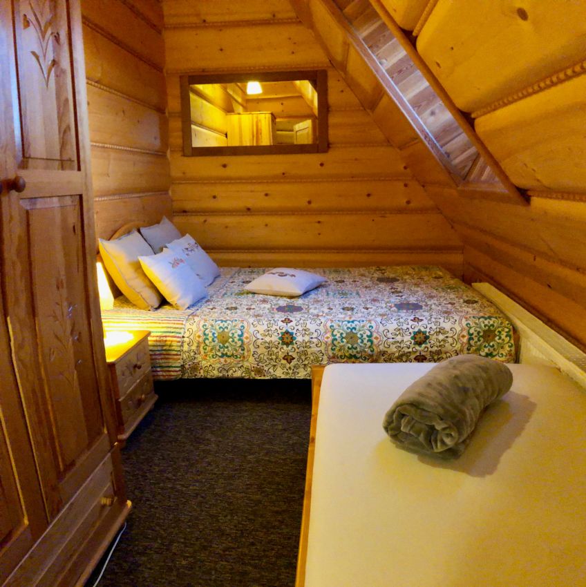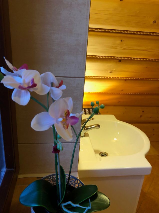 łazienka z prysznicem, kuchnia (czajnik, kuchenka, lodówka, naczynia)